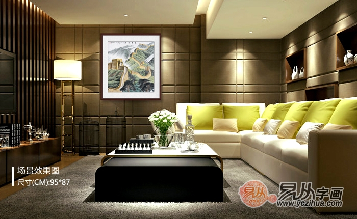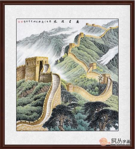 客厅里挂一幅画,仅仅是用作装饰环境美感吗?一幅挂画同样也影响着家中风水格局,特别是做生意的人家中,一幅装饰画是必不可少了,既是装点品味感,同样也是调节风水的重要所在。 ![]() 生意人客厅挂画推荐一: ![]() 李林宏手绘国画长城山水画斗方作品《万里雄风》作品来源:【易从网】 家中挂一幅长城画,其寓意是镇宅,安稳靠山之意,长城“东方巨龙”、“国之魂魄民之脊梁”、“气壮神州”,真乃“帝王之姿”,身份无比尊贵!那句“不到长城非好汉”,把长城在中国人心目中的地位,推崇到极致!