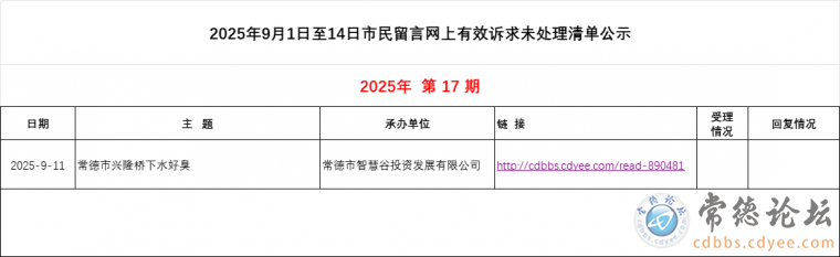 [每日简报]常德《市民留言》网上有效诉求未处理清单公示