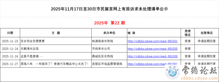 [每日简报]常德《市民留言》网上有效诉求未处理清单公示