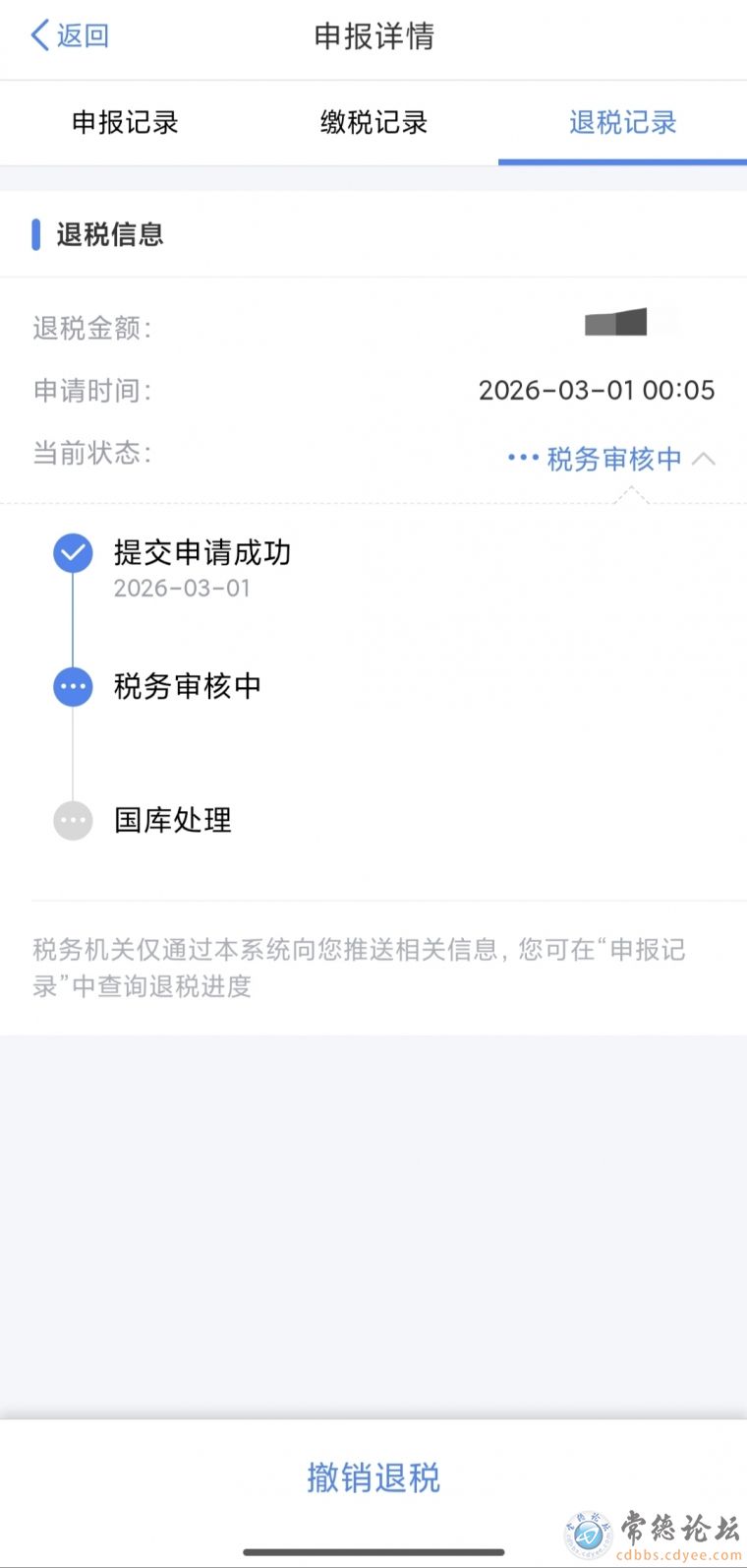 3月1日,提交的个人退税,一直到3月23日还一直在审核中。