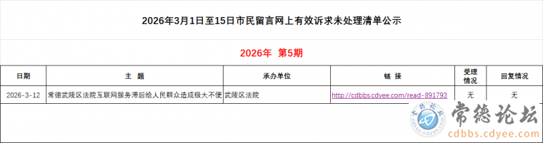 [每日简报]常德《市民留言》网上有效诉求未处理清单公示
