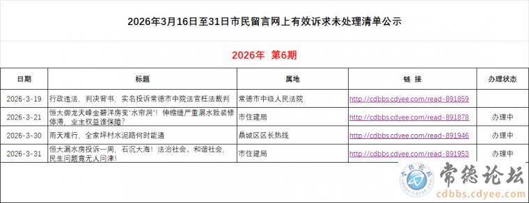 [每日简报]常德《市民留言》网上有效诉求未处理清单公示