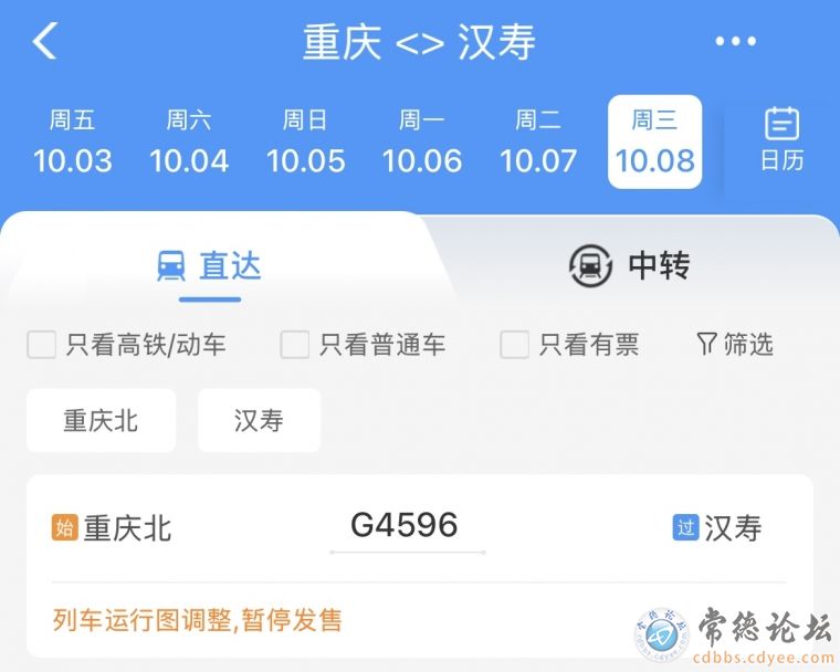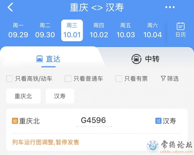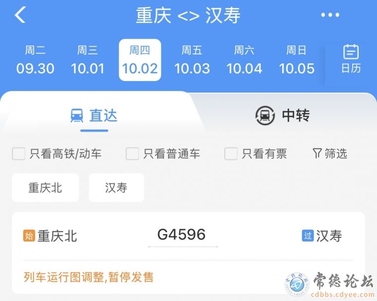 不知道楼主哪来的消息?G4596是北海站到深圳北站的,而且停运几天了。目前购票APP上查询重庆北到汉寿没有直达车次。https://www.icauto.com.cn/chuxing/gt_1554.html