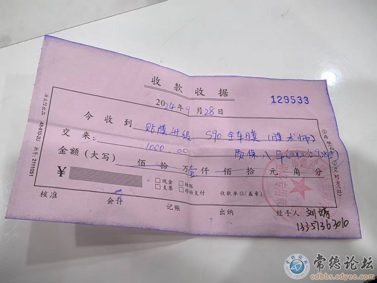 店里一位负责人百般搪塞,问我是不是喷了香水,我说我从来不用香水,车上根本没有香水味,他们又说,是不是你经过喷农药的地方了?我说绝对没有,而且膜在车窗里面,外面喷什么,也不会影响车内呀!他们无法可说,但绝不承认质量问题。待我拿出店里开出的质保8年的单子,他们才同意换膜,但是,只同意换膜,还得要求我出200元工时费,等于变相收费。