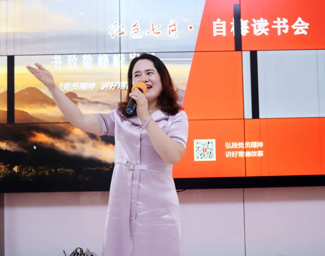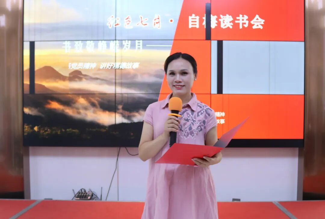 本次活动主持人由中心党支部组织委员丽霞美女担纲。她一改往日的内敛矜持,在本次活动中发挥了超高水平,大胆热情的主持风格点燃了七月流火,点燃了共产党人榜样的光辉!现场氛围高潮迭起。小编再一次相信了——人的潜能是无限的。